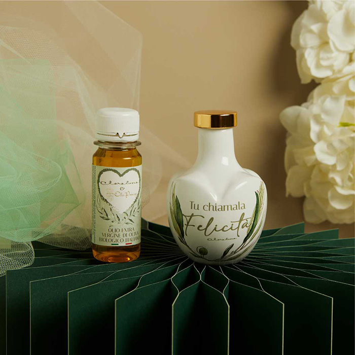 CLARALUNA-Oliera in porcellana piccola con olio - cm.7x7x10 - incluso di astuccio e portaconfetti