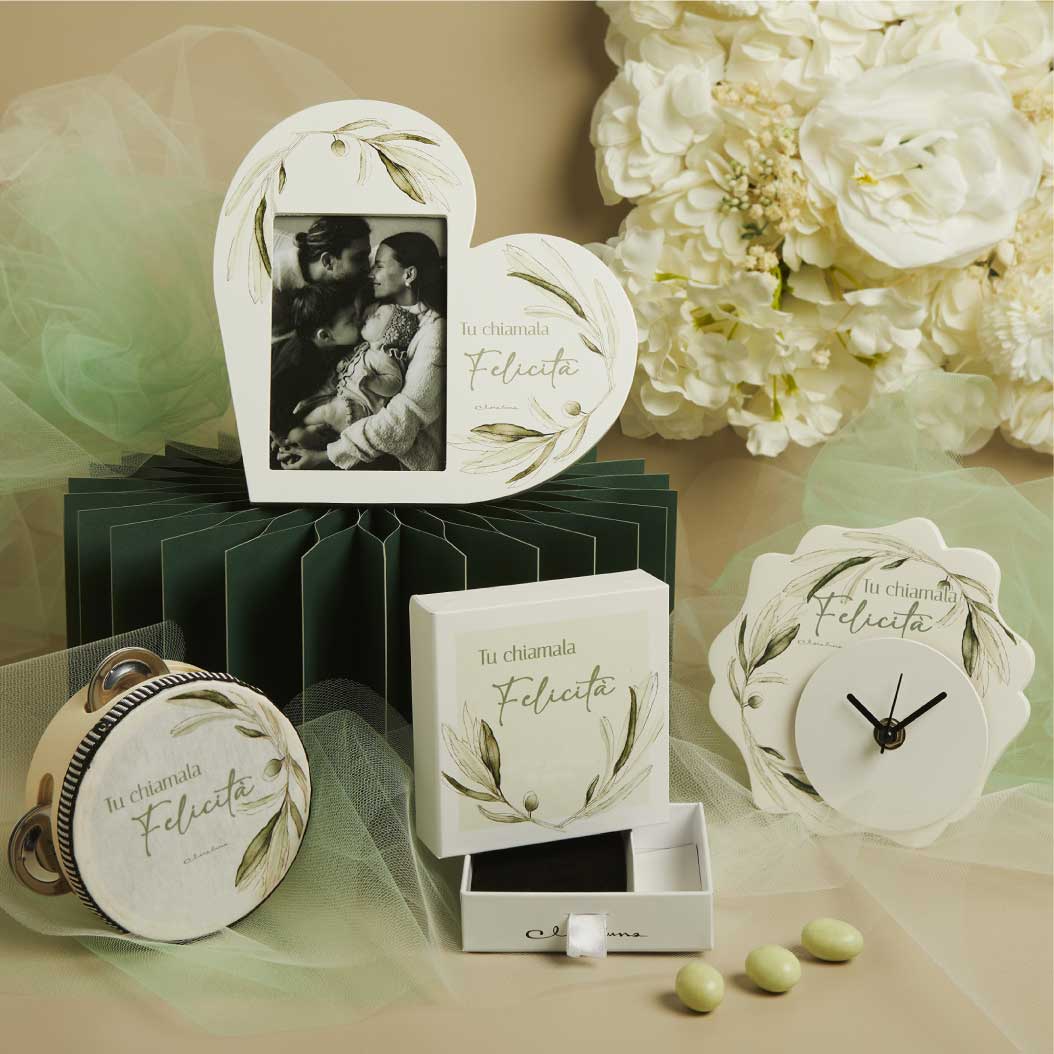 CLARALUNA-Portafoto decoro ulivo - cm.15x15x1 - incluso di astuccio e portaconfetti