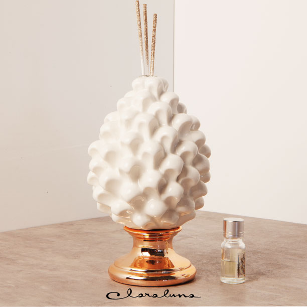 CLARALUNA Profumatore grande pigna in porcellana con base colore rame - cm.20x12x12 - incluso di kit essenza - Ogni articolo ha la sua scatola regalo e il certificato di garanzia Claraluna  *Acquistando il minimo di 50 pezzi, le partecipazione di nozze sono in omaggio*