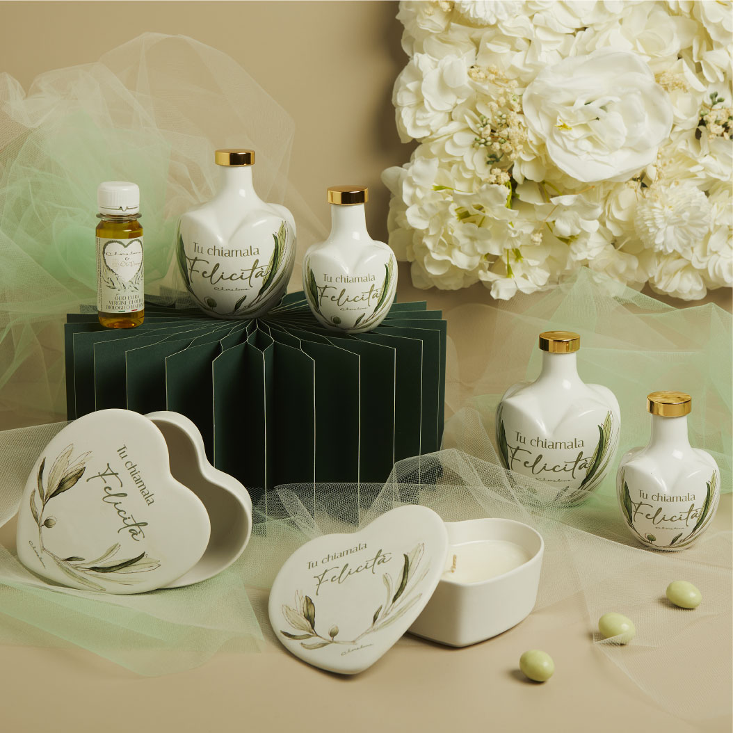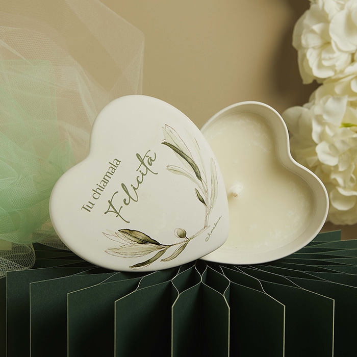 CLARALUNA-Scatola cuore candela in porcellana decoro ulivo