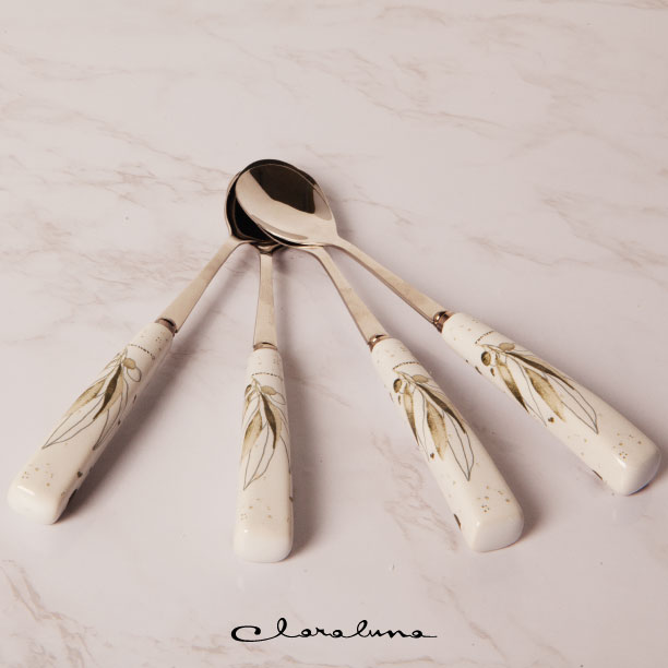 CLARALUNA Set 4 cucchiaini con manico porcellana