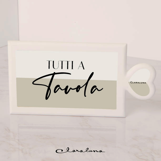 CLARALUNA Sottopentola rettangolare in legno "Tutti a tavola" - cm.20x10,5x1 - Ogni articolo ha la sua scatola regalo e il certificato di garanzia Claraluna  *Acquistando il minimo di 50 pezzi, le partecipazione di nozze sono in omaggio*