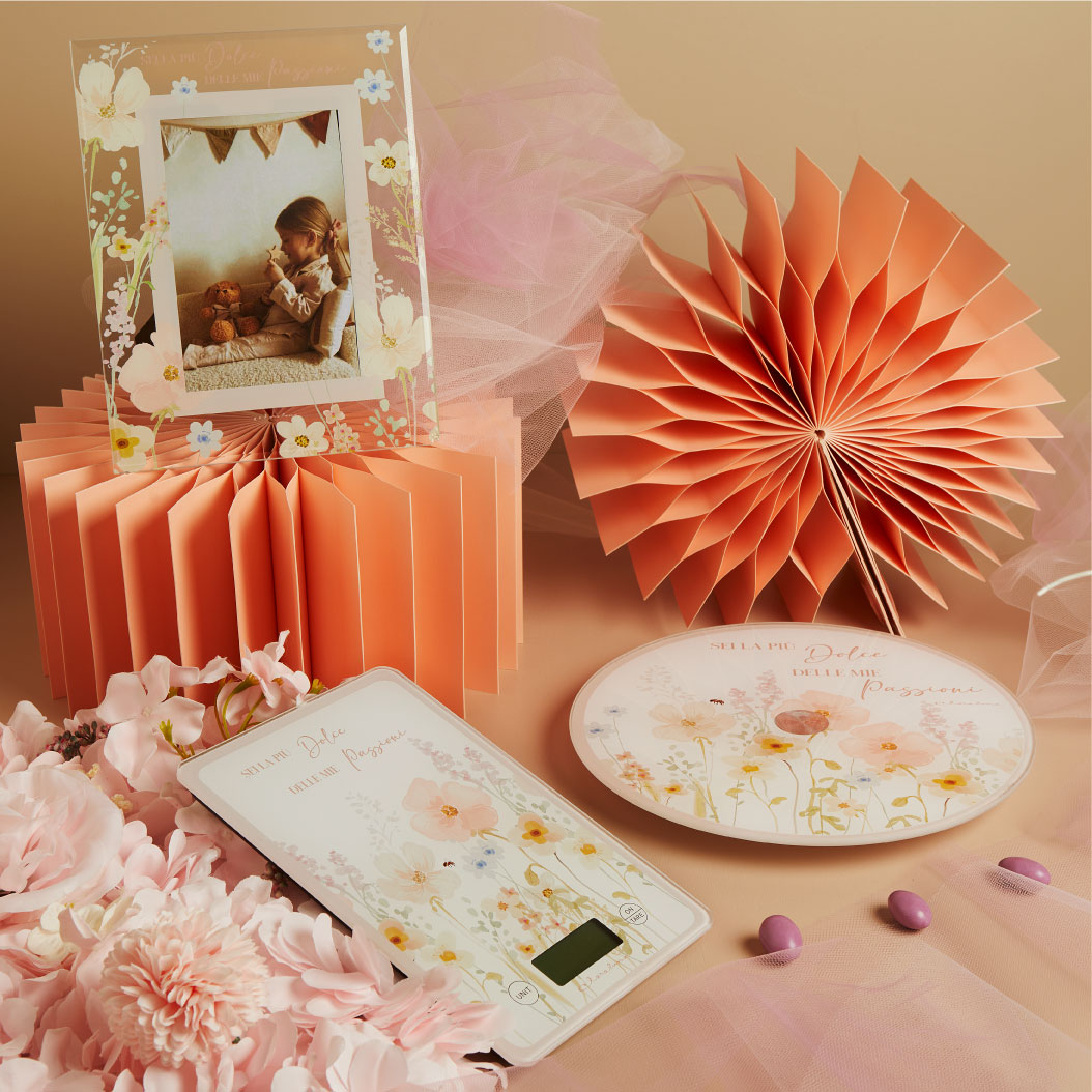 CLARALUNA-Vassoio tondo girevole decoro fiori rosa