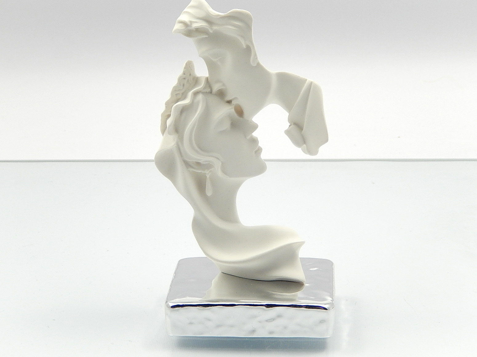 Coppia di sposi in resina bianca con base argentata - cm.h.14 - inclusa di astuccio