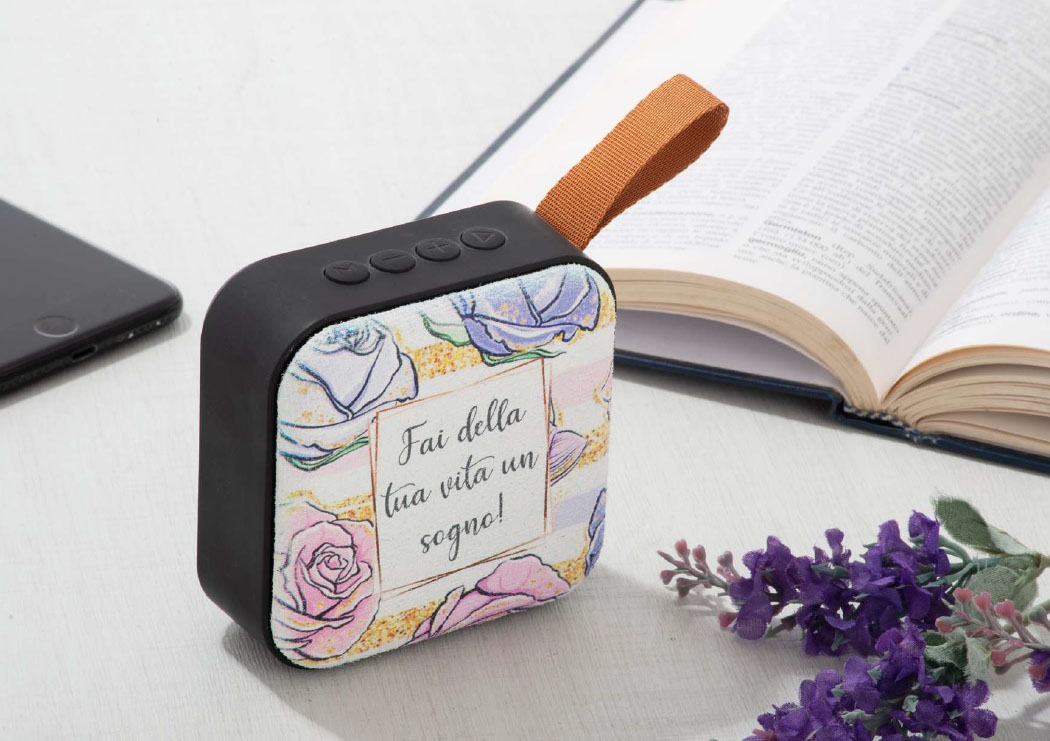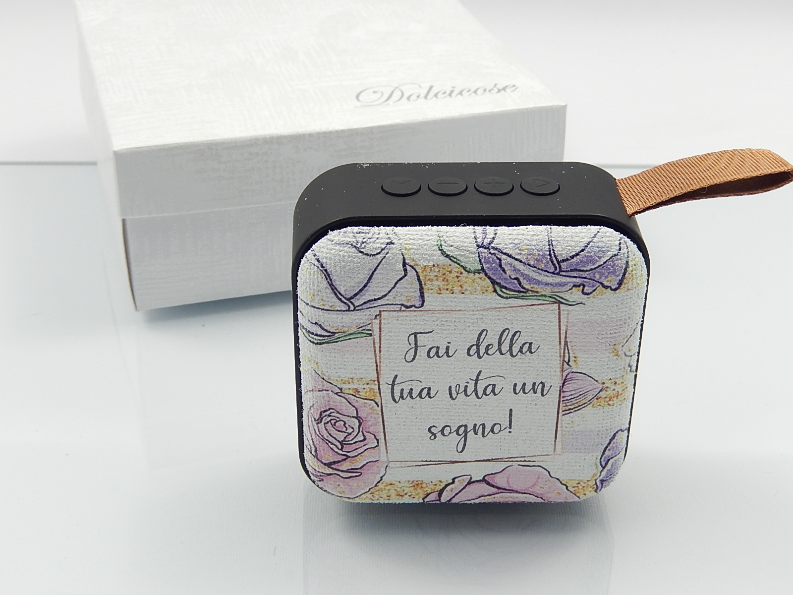 Dolcicose Cassa bluetooth decoro floreale - misure cm.9,5x5 - compresa di astuccio, portaconfetti in pvc