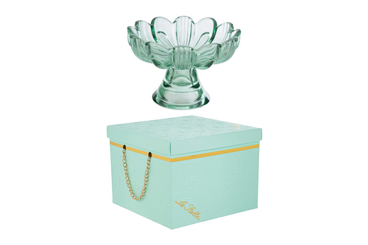 Fiore alzatina in vetro colore verde - cm.14x14xh.9 - inclusa di astuccio