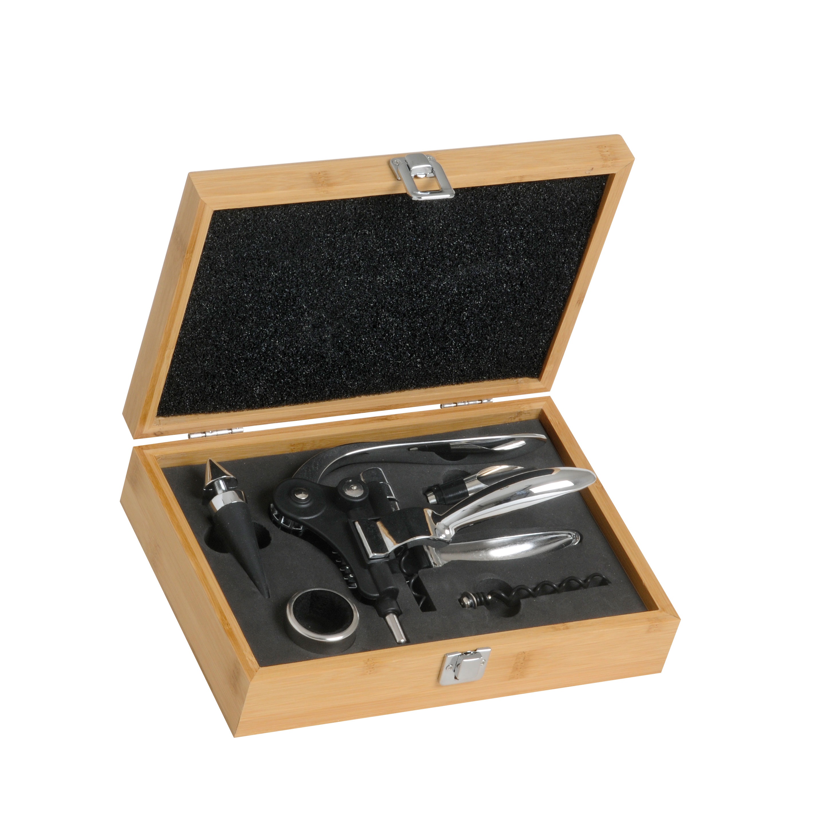 Kit cinque accessori vino e astuccio in bamboo cm.26x18,5xh.7