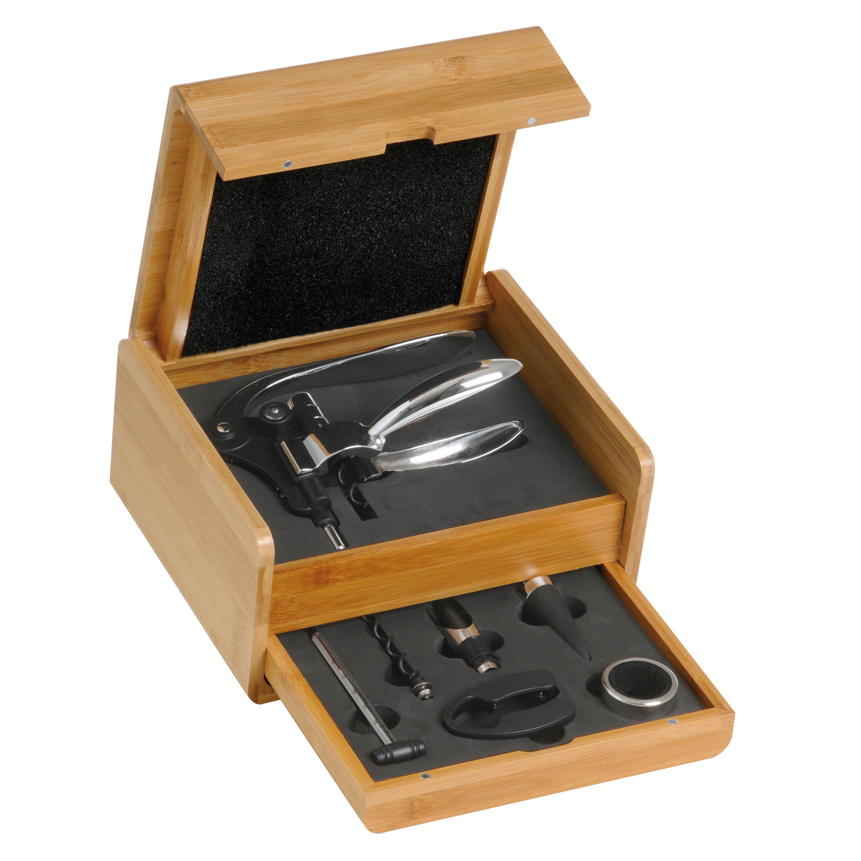 Kit sette accessori vino con astuccio in bamboo cm.23x19,5xh.11,5