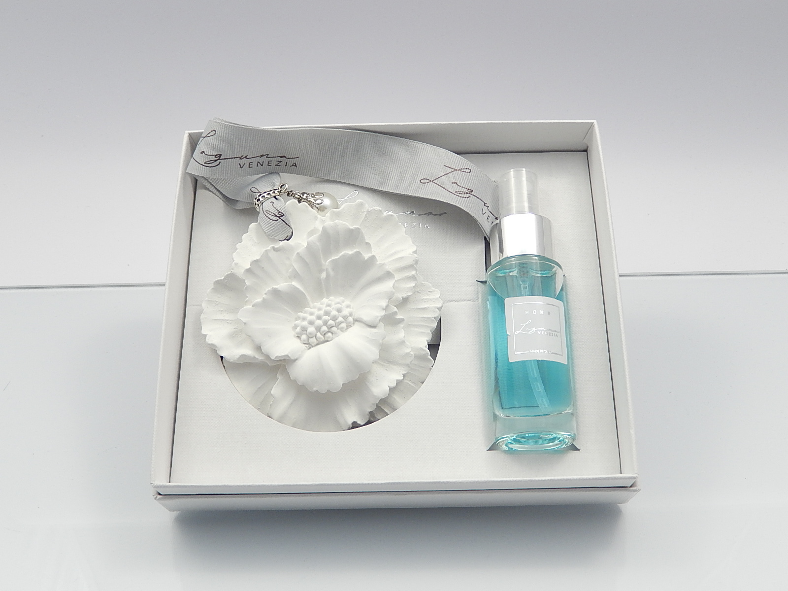 LAGUNAHOME-Gesso modello garofano ø cm.9 con spray  30 ml. cotone/sandalo - incluso di astuccio regalo cm.16x19