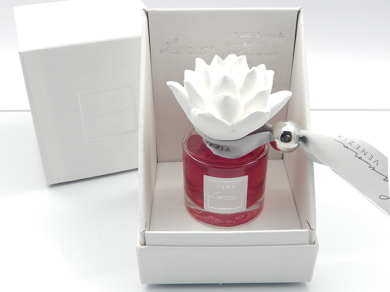 LAGUNAHOME-Profumatore tondo 50ml colore rosso con tappo in gesso modello ninfea essenza agrumi di sicilia - incluso di astuccio 10x10xh.15
