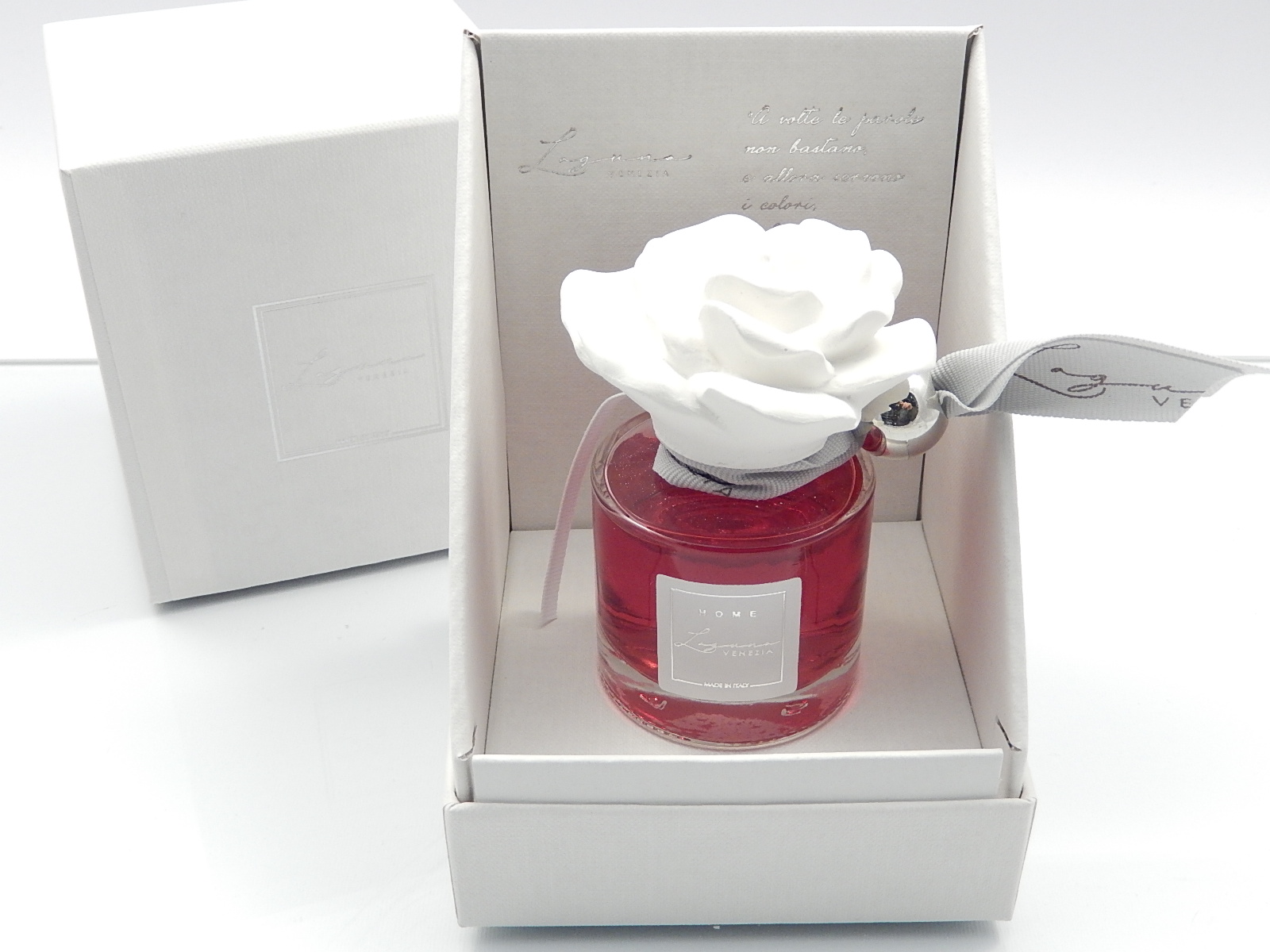 LAGUNAHOME-Profumatore tondo 50ml colore rosso con tappo in gesso modello rosa essenza agrumi di sicilia - incluso di astuccio 10x10xh.15