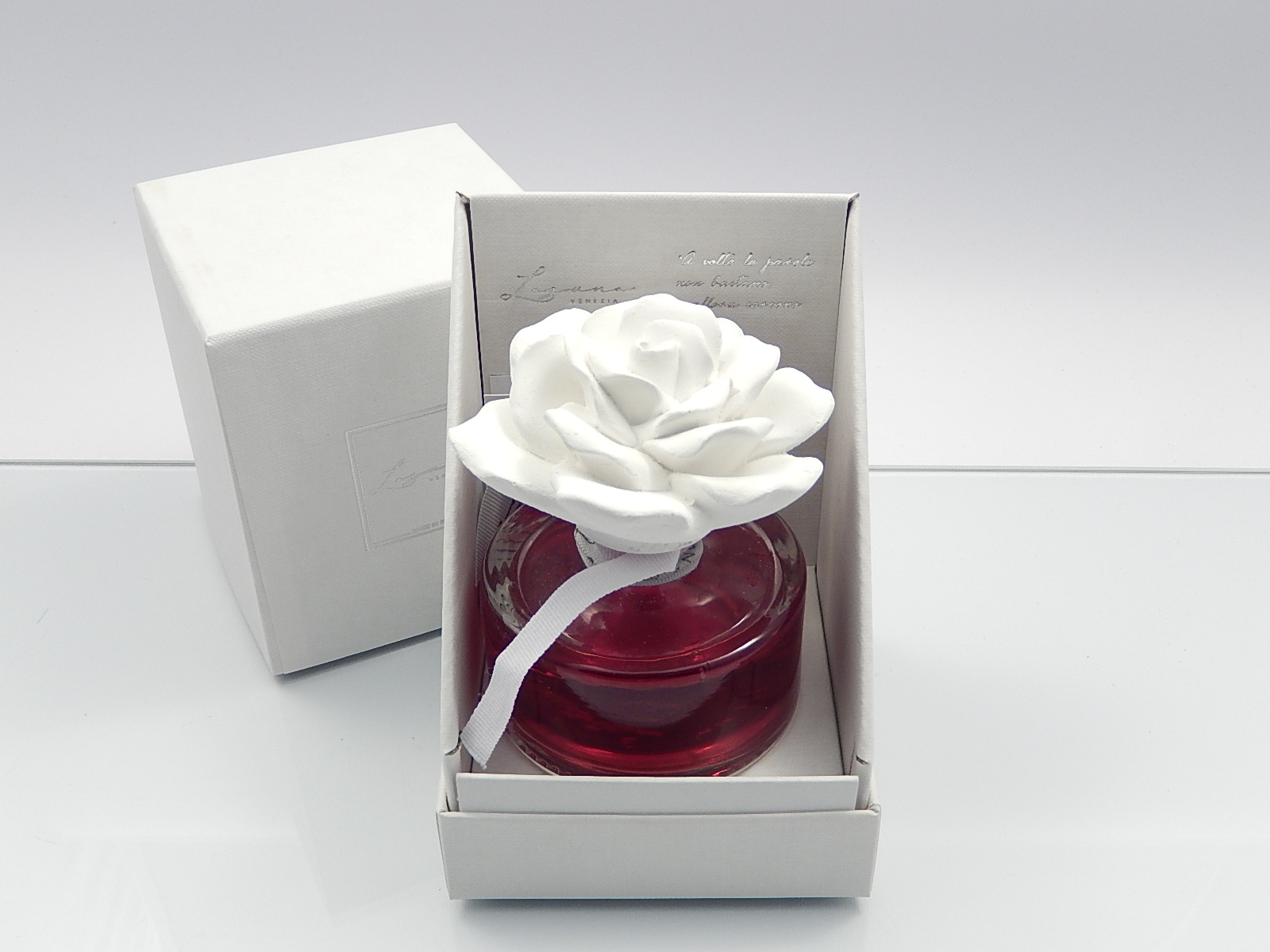 LAGUNAHOME-Profumatore tondo con rosa in gesso100 ml. con profumazione rosa/papavero - incluso di astuccio regalo cm.13xh.21