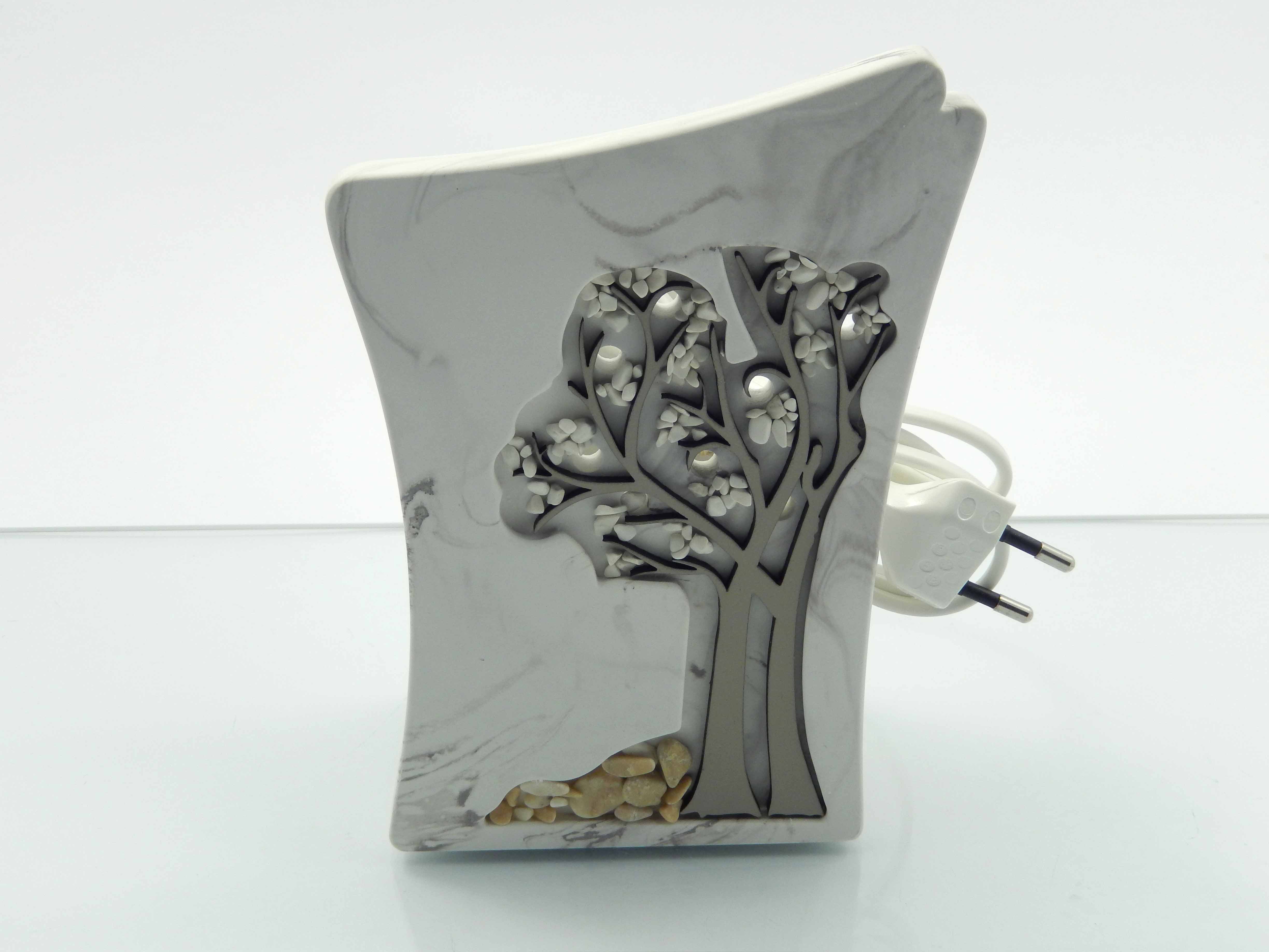 Lampada in pietre di marmo naturale decoro albero realizzata interamente a mano - disponibile in quattro diverse misure - inclusa di astuccio di cartone