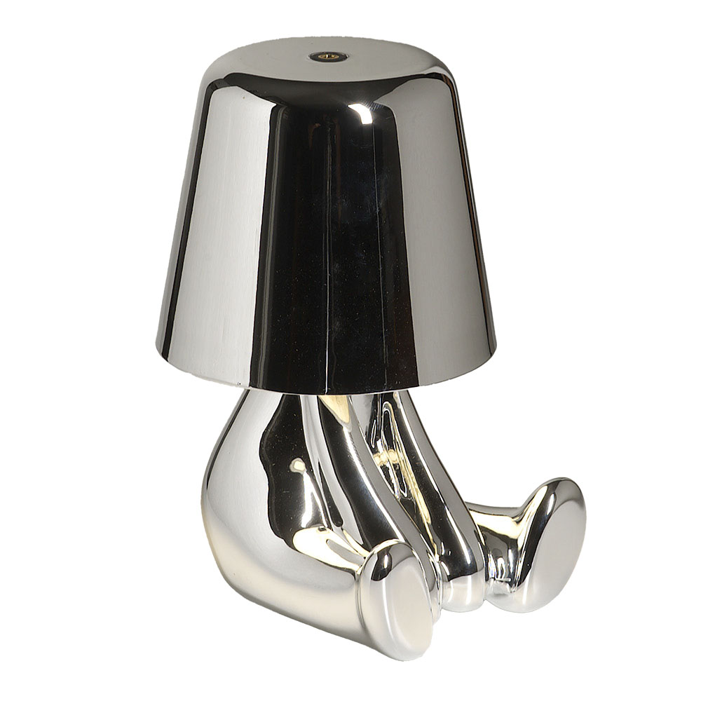 Lampada led argento in seduta mani davanti - tre tonalità, alimentata con pile e cavo usb (inclusi) - cm.10xh.19