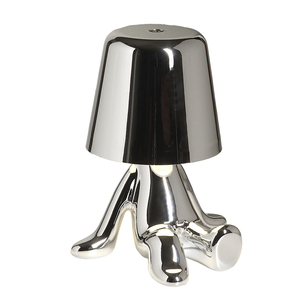 Lampada led argento in seduta mani dietro - tre tonalità, alimentata con pile e cavo usb (inclusi) - cm.10xh.19
