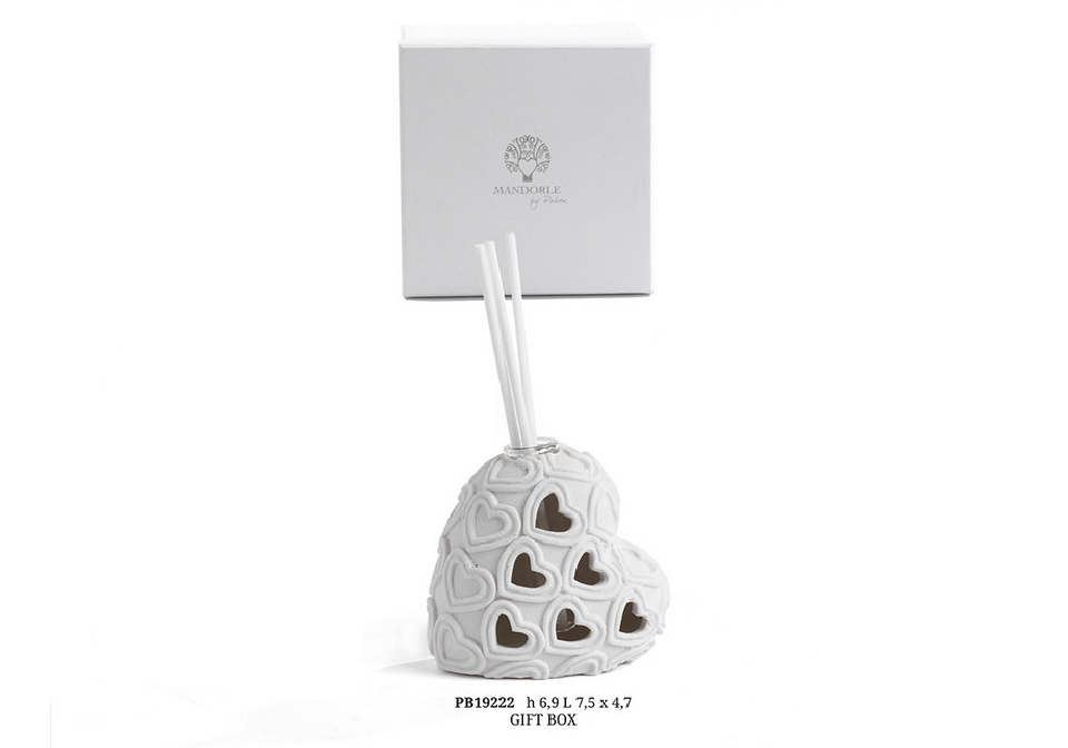 MANDORLE-Profumatore porcellana cuore con astuccio regalo