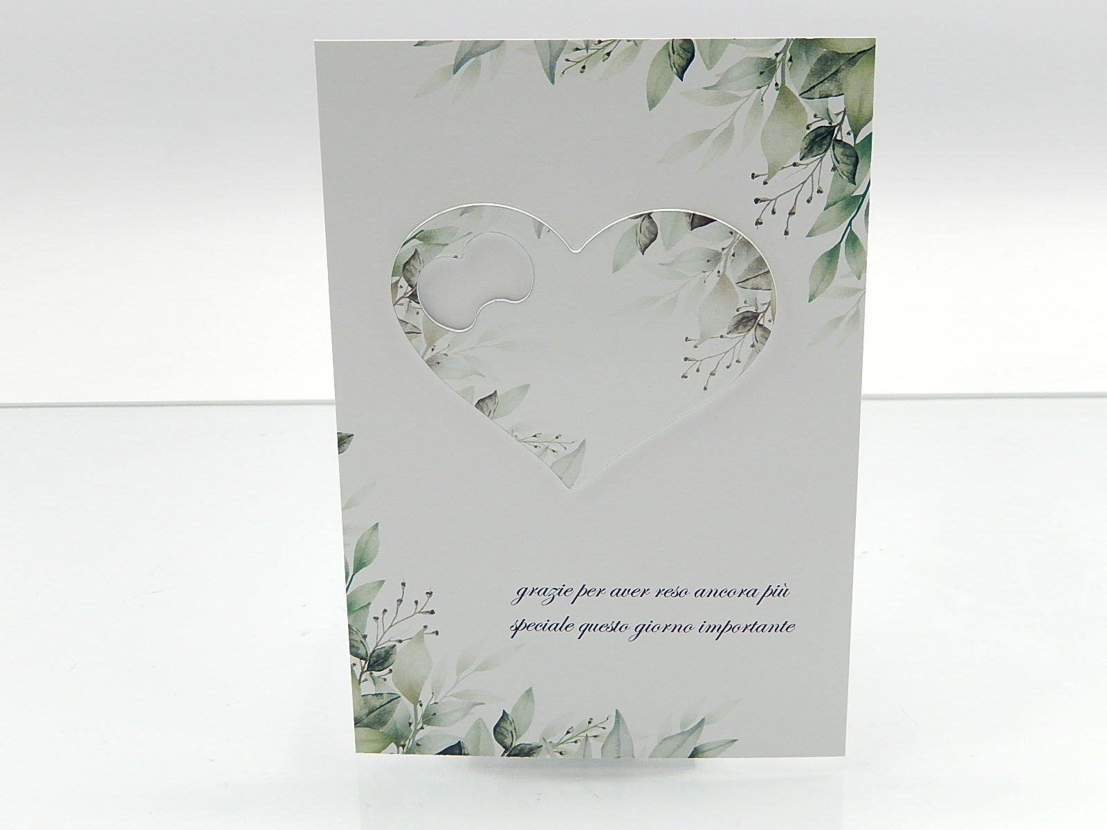 NEGO'-Cavatappi cuore in metallo decoro foglie verdi su cartoncino stampato - cm.11x16