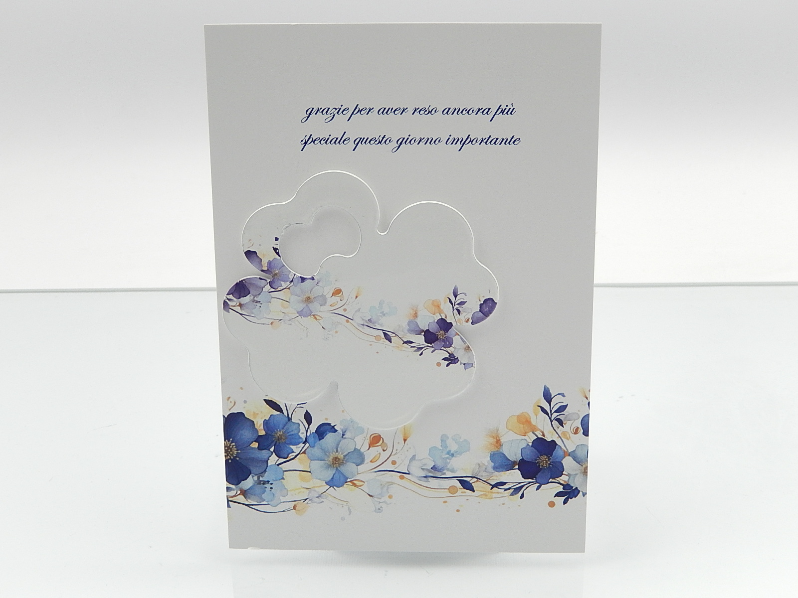 NEGO'-Cavatappi quadrifoglio in metallo decoro fiori blu su cartoncino stampato - cm.11x16