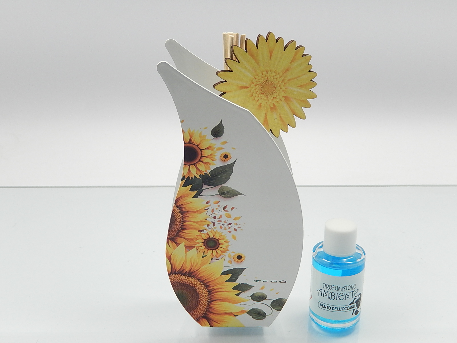 NEGO'-Profumatore con fiori in legno con essenza decoro girasoli - incluso di astuccio - cm.7,5xh.18