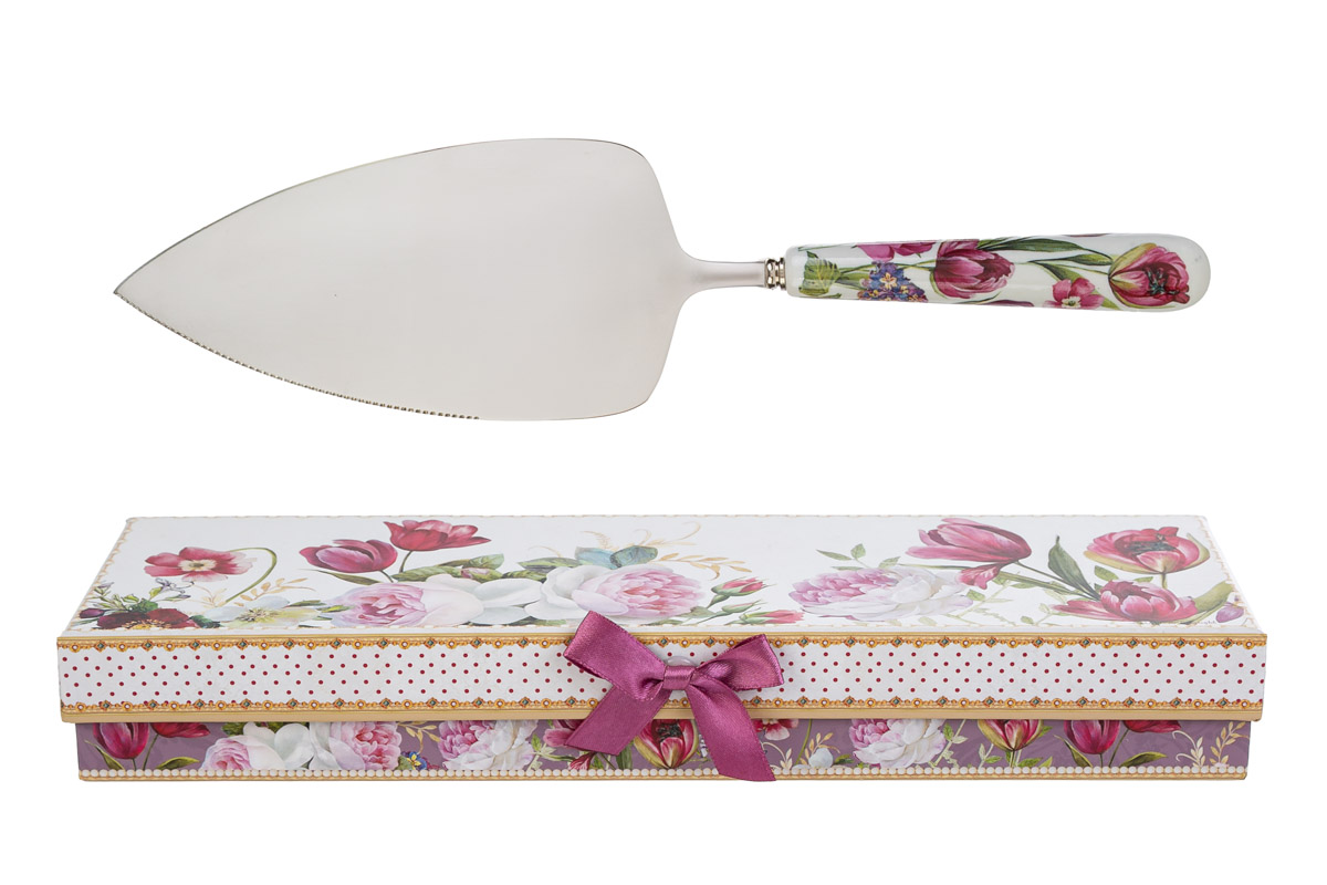 Pala torta bouquet di charme in porcellana - inclusa di astuccio - cm.28,5x9x4