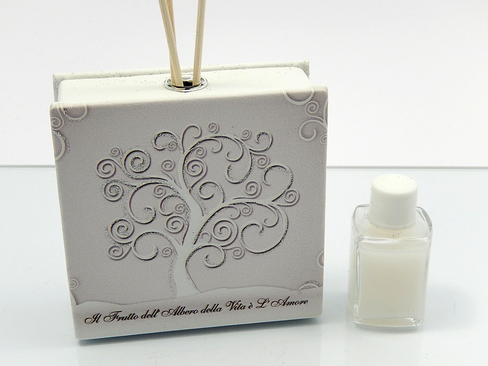 Profumatore in pelle con kit essenza e stampa albero della vita cm.11x11x3,5