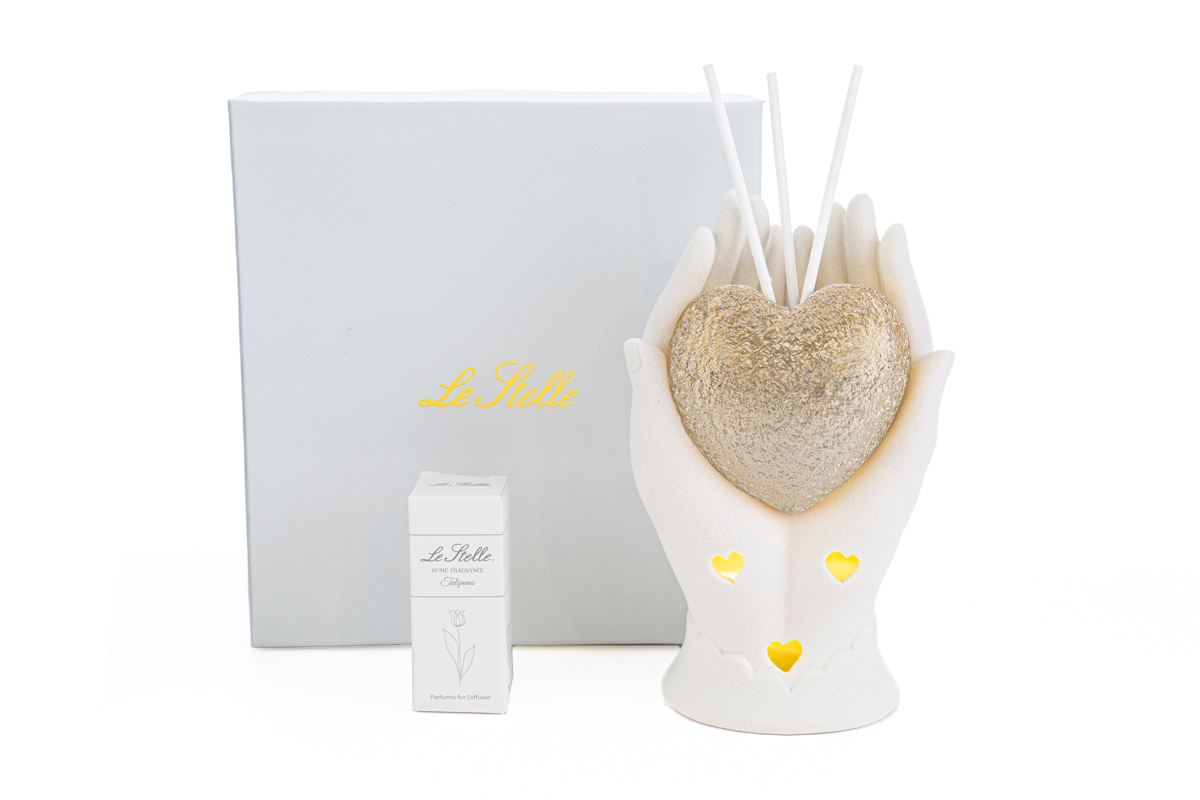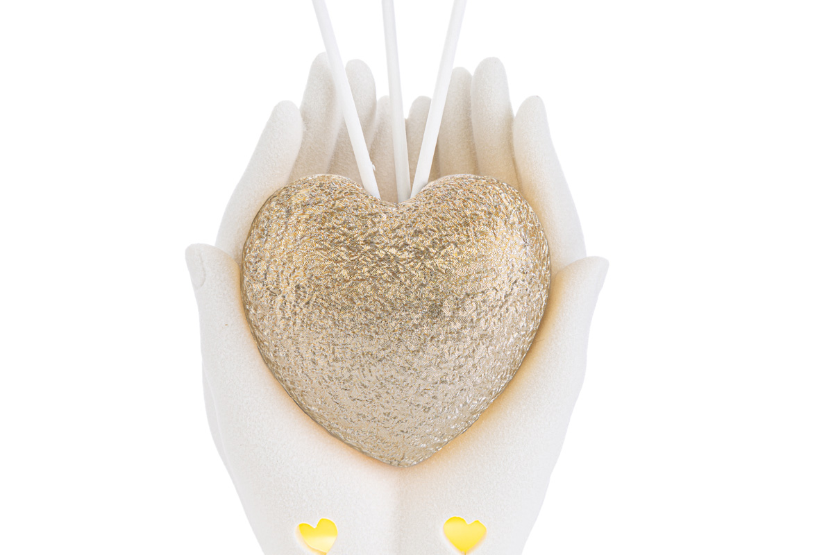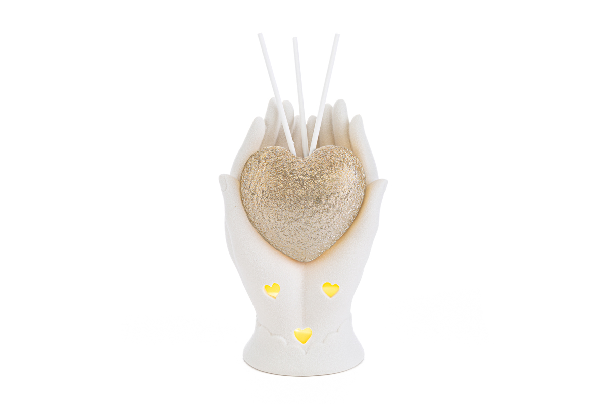 Profumatore mani in ceramica con cuore e luce led cm.9,5x7,5xh.15,5 incluso di essenza e astuccio regalo