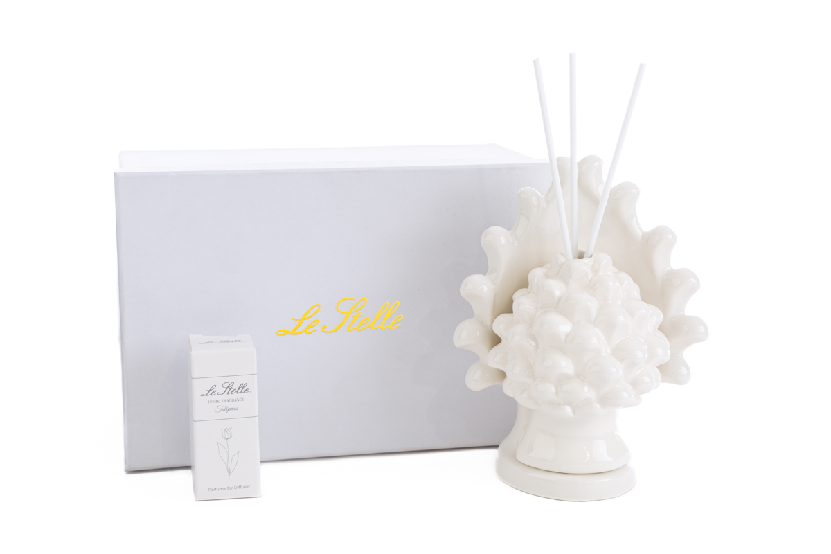 Profumatore porcellana pigna colore bianco incluso di astuccio regalo ed essenza - cm.12,5x9xh.15