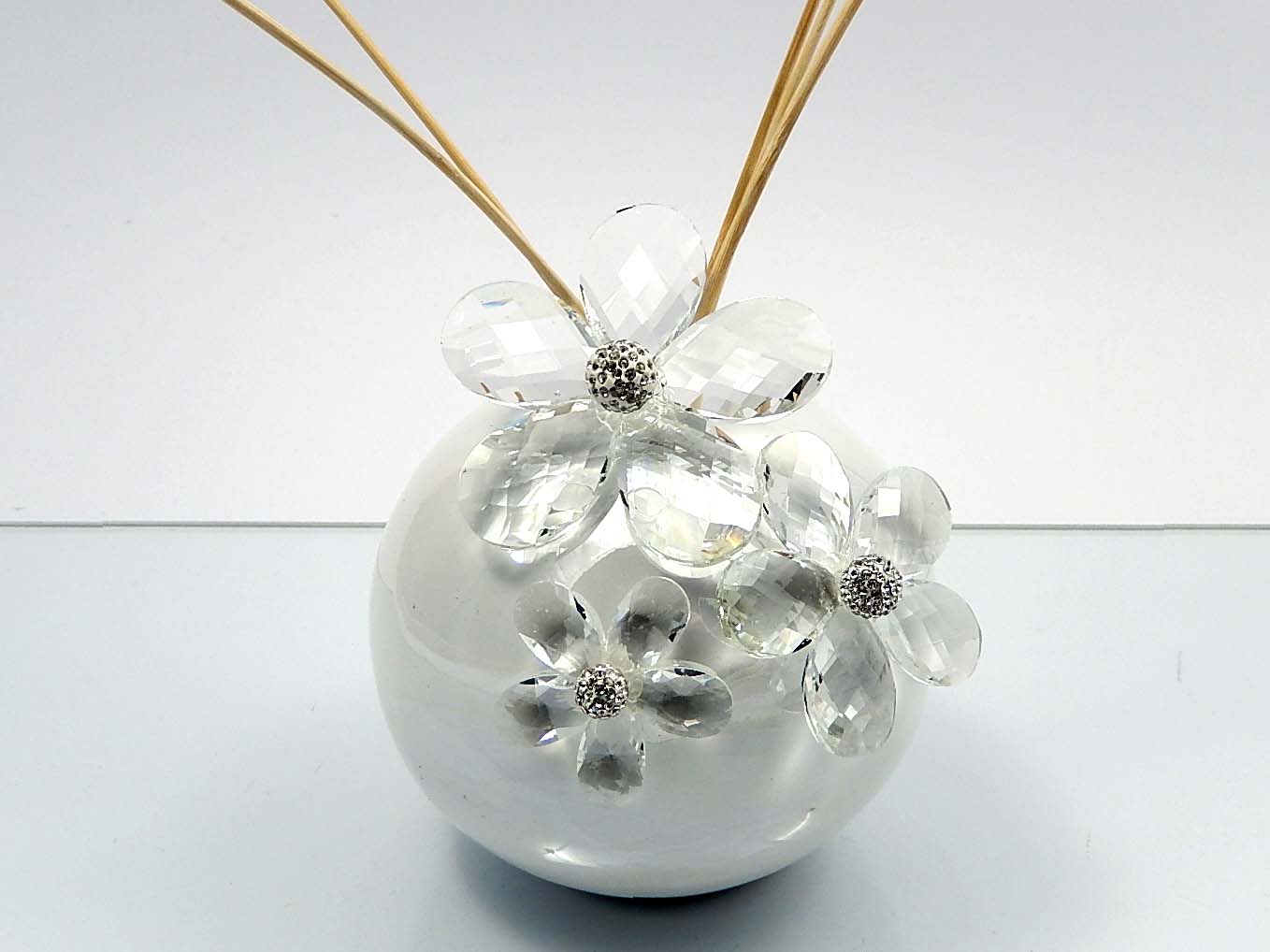 Profumatore tondo in ceramica con fiori in cristallo
