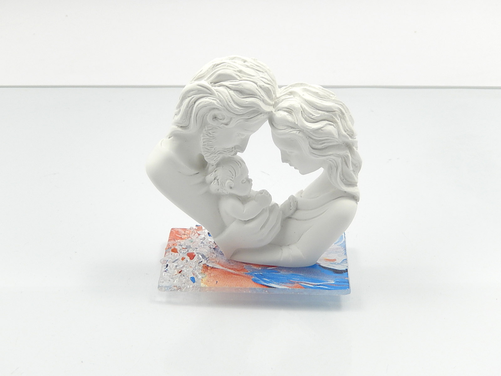 Sacra Famiglia in resina h.12 con base di vetro arcobaleno