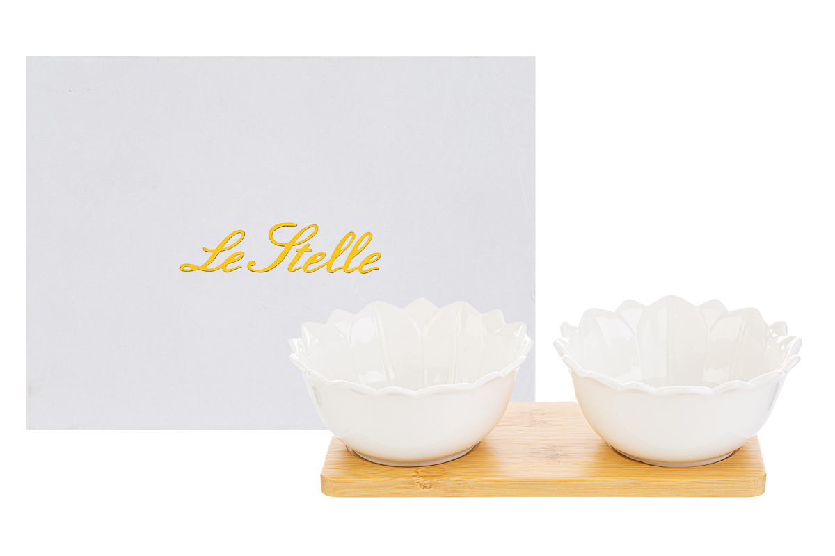 Set due ciotole tonde smerlate in porcellana bianca - incluse di astuccio regalo - cm.23x12xh.6