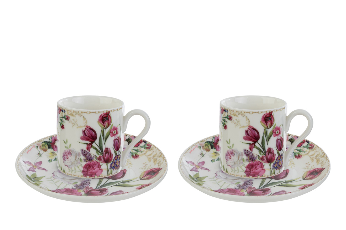 Set due tazze caffè bouquet di charme in porcellana