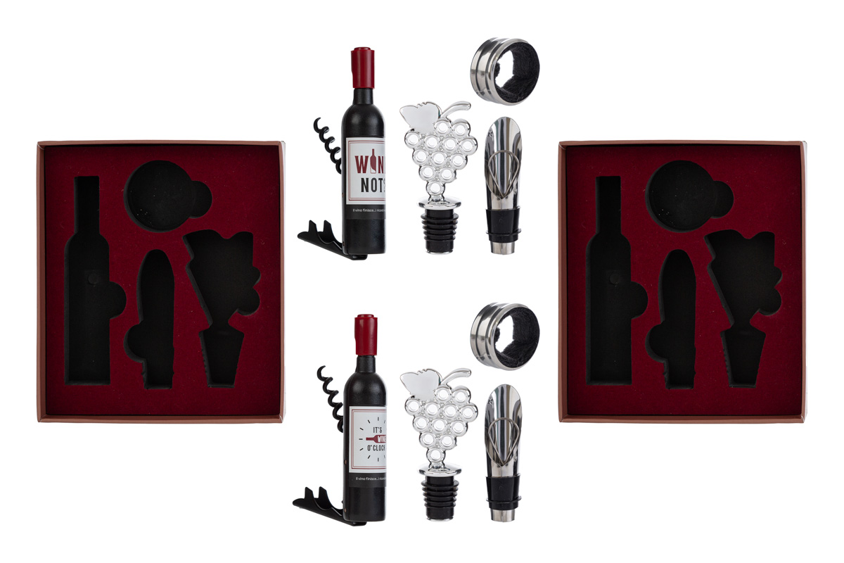 Set due pezzi accessori vino wine time - due modelli con scritta assortita - incluso di astuccio