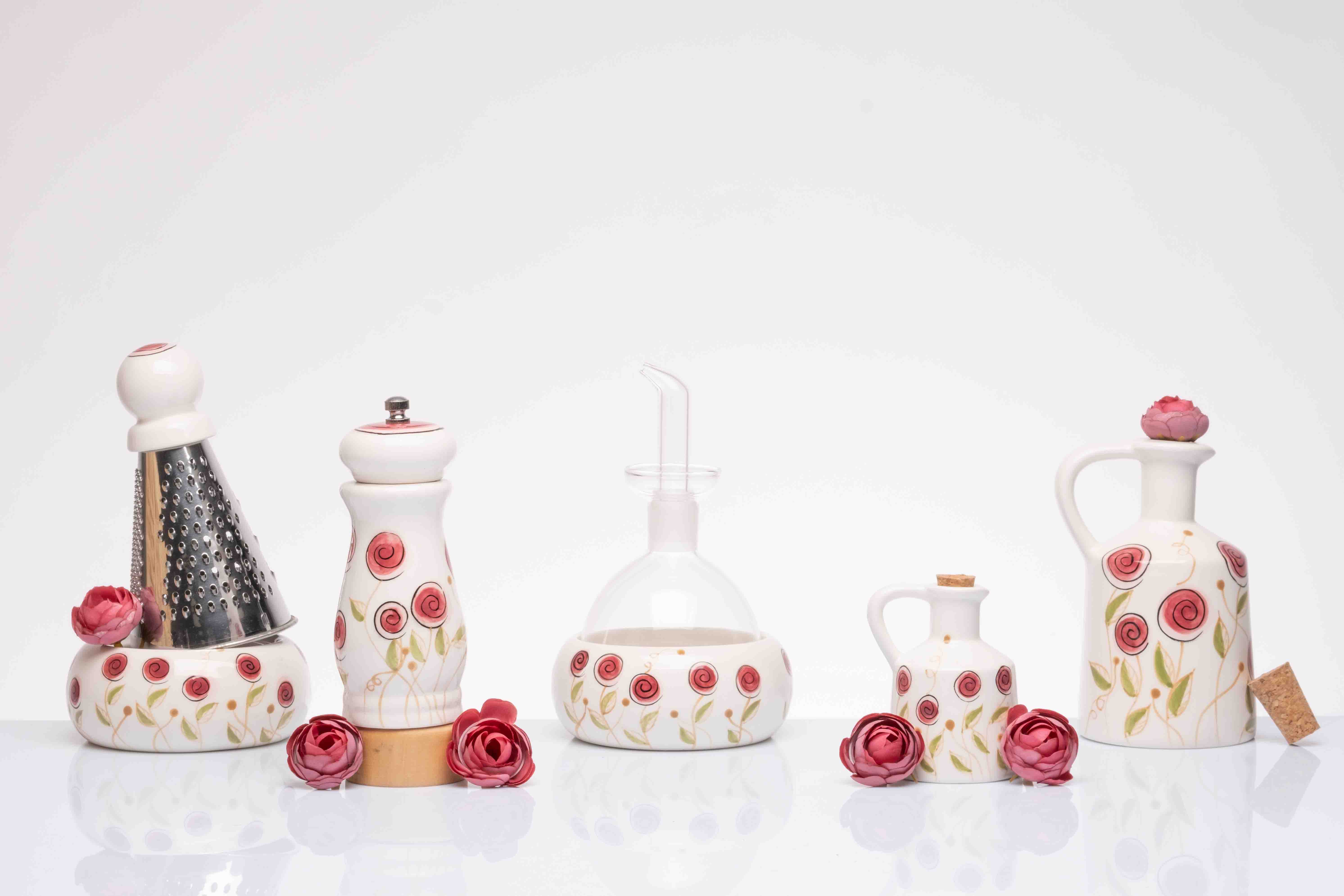 CUOREMATTO-Oliera in porcellana bocciolo rosa 350ml. - inclusa di astuccio - olio compreso
