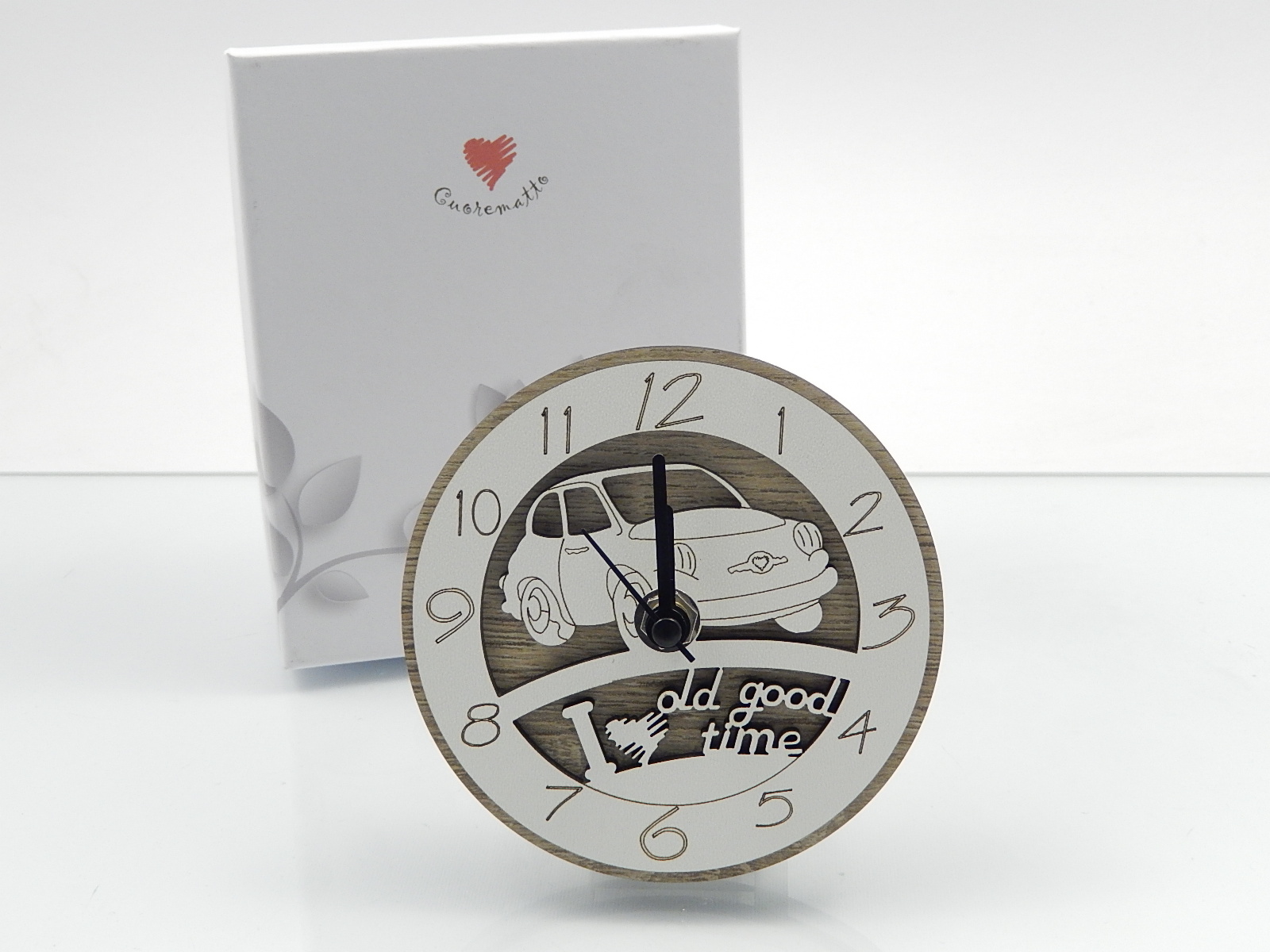 CUOREMATTO-Orologio in legno con inserto barca a auto øcm.11,5 - incluso di astuccio
