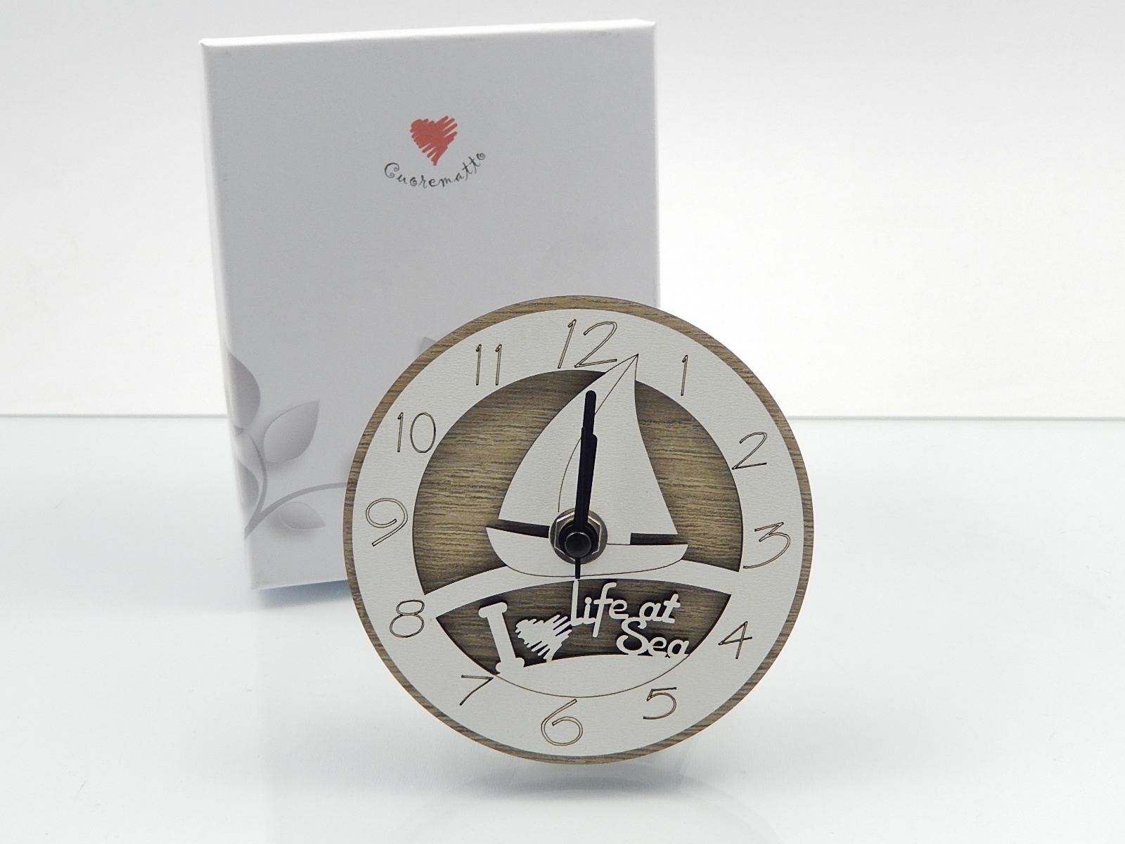 CUOREMATTO-Orologio in legno con inserto barca a vela