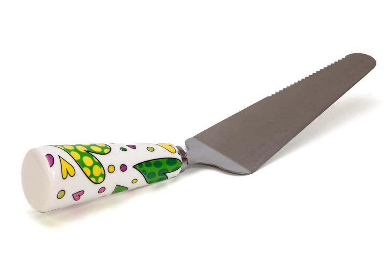 CUOREMATTO-Palatorta manico in porcellana decoro cuoricini lung.cm.27 -Scegli le bomboniere di Cuorematto:fai del bene e ricevi, con un acquisto minimo di 40 pezzi,le Partecipazioni e il Sito del tuo matrimonio in omaggio