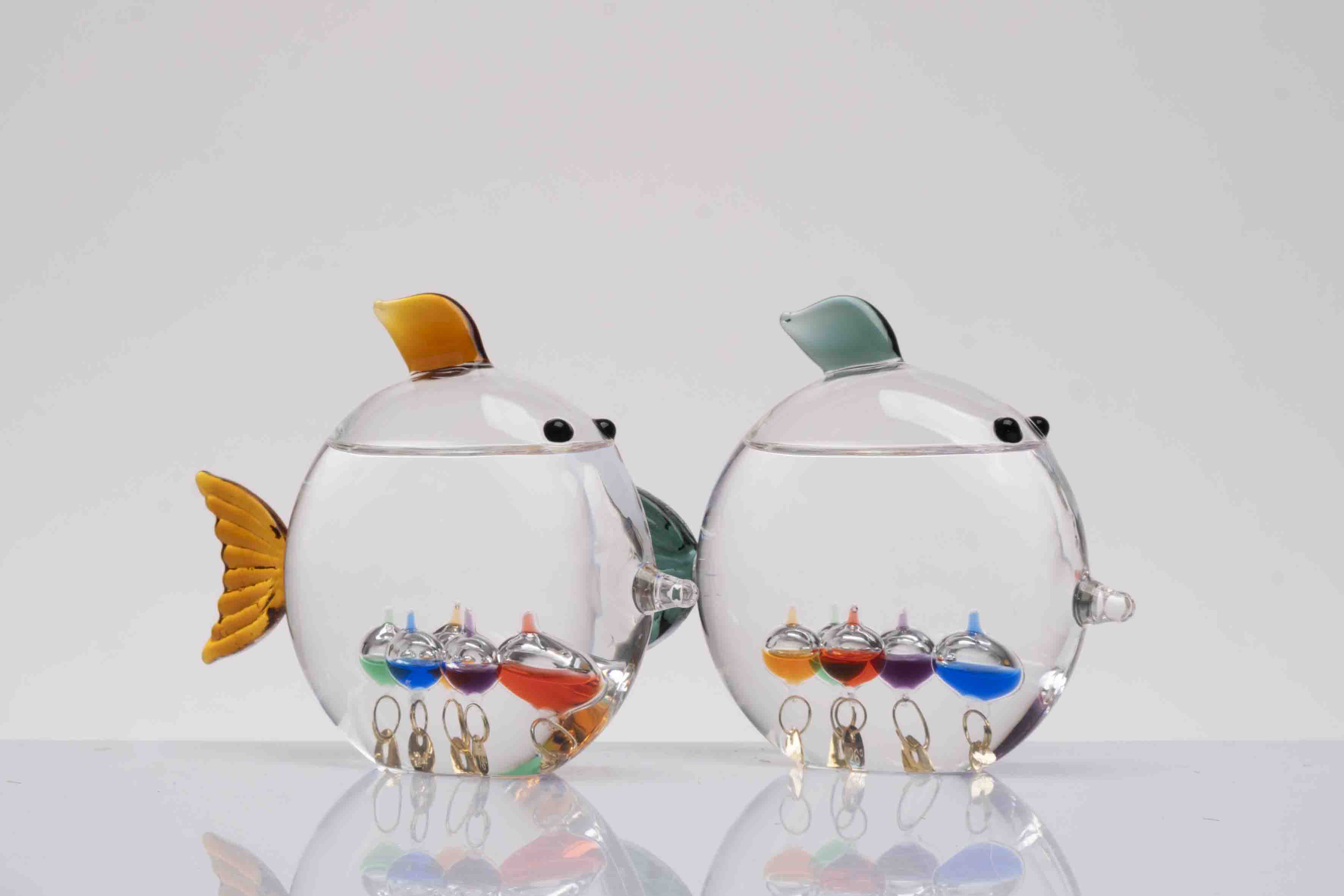 CUOREMATTO-Termometro in vetro pesciolino in due colori assortiti - cm.6,5x9 - astuccio non compreso (il prezzo è riferito al singolo pezzo)