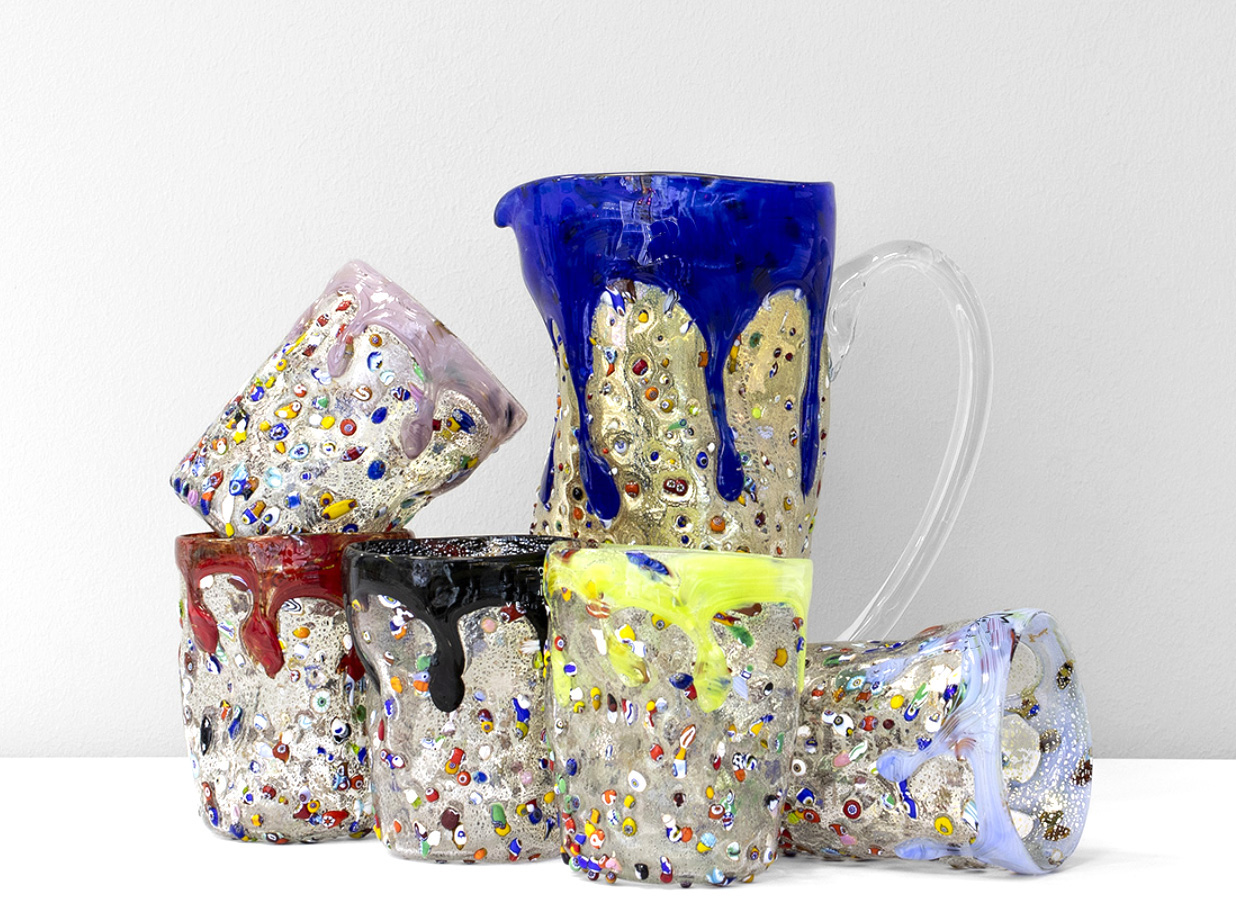 Caraffa in vetro di Murano con murrine in rilievo e goccia - Disponibile in 9 colori - Caraffa h.cm.25 (articolo fatto interamente a mano con tempi di produzione minimi di 15 giorni)