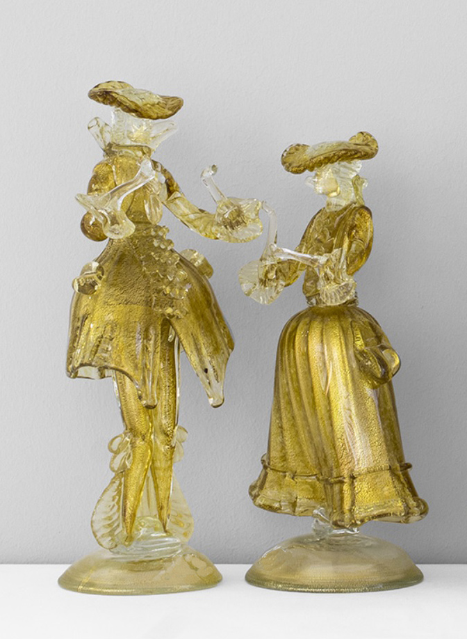 Goldoniane colorate con foglia oro colore oro cm.h.31 in vetro di Murano (prezzo della coppia) (Articolo prodotto a mano completamente con tempi di realizzo minimo 15 giorni)
