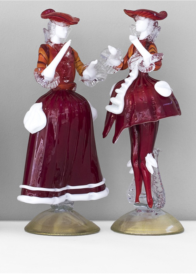 Goldoniane opache colore rosso rubino cm.h.31 in vetro di Murano (prezzo della coppia) (Articolo prodotto a mano completamente con tempi di realizzo minimo 15 giorni)