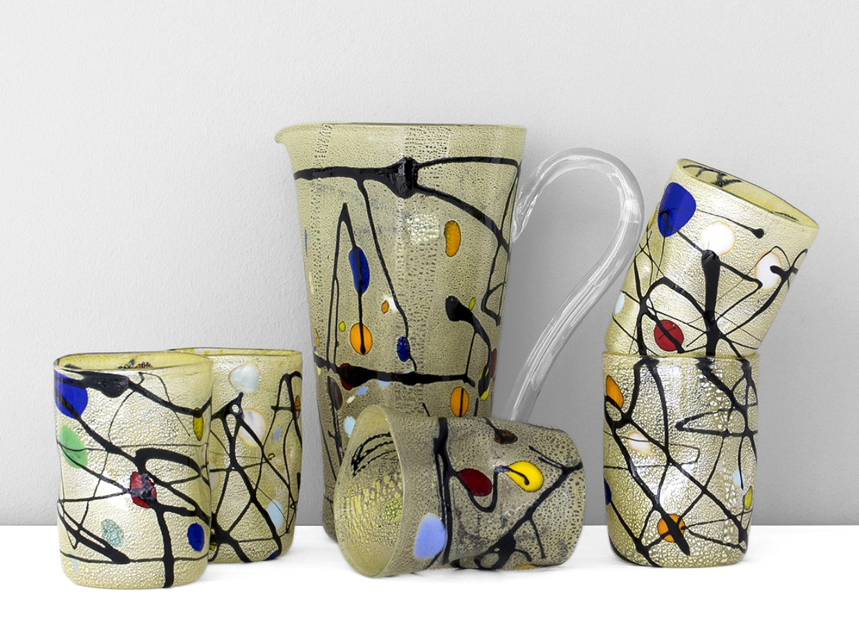 Murano Set 6 bicchieri in vetro decoro fantasy